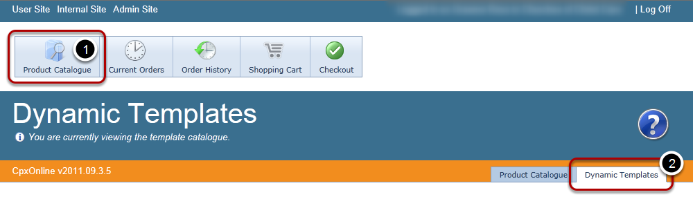 Click on the Product Catalogue menu (#1) and then the Dynamic Templates tab (#2)