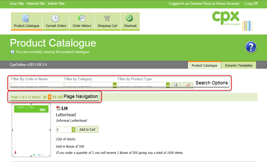 To locate the product you can use the search options if you know the name, code or type of product, or you can use the page navigation buttons to browse the entire catalogue.