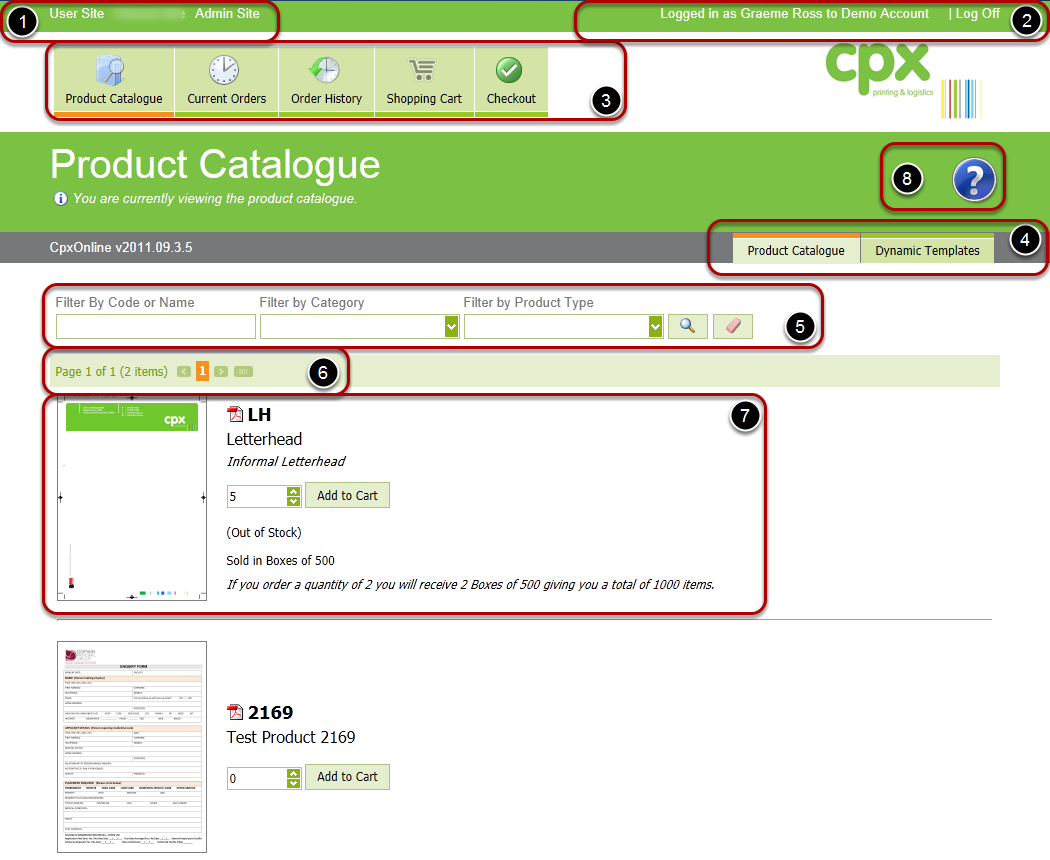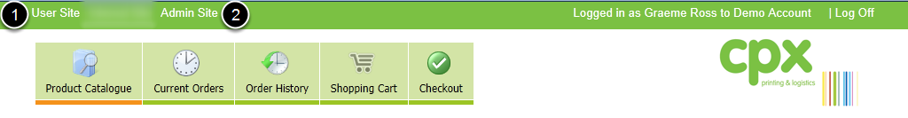 Depending on your permissions you may have access to both the User Site & Admin Site, to switch between the two sites you can use these links.